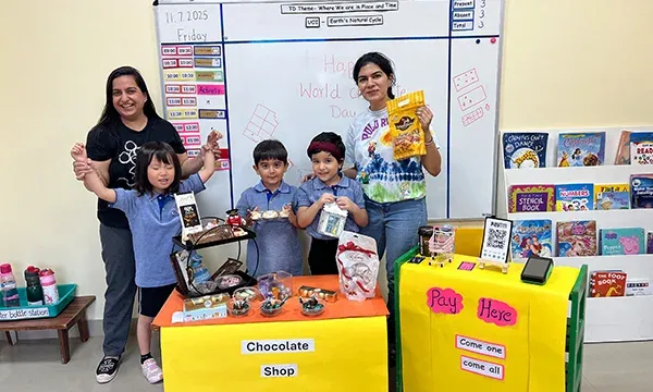 We celebrated World Chocolate Day with a delightful blend of learning and fun! Children enjoyed an engaging audio-visual session on the history of chocolate, how it is made, its different flavours and even took a virtual tour of a chocolate factory. The day was packed with chocolate-themed activities including crafts, music, games and a sensory experience of making chocolate play dough. The little ones also took part in a lively chocolate shop role play and ended the celebration with a sweet treat—chocolate donuts!